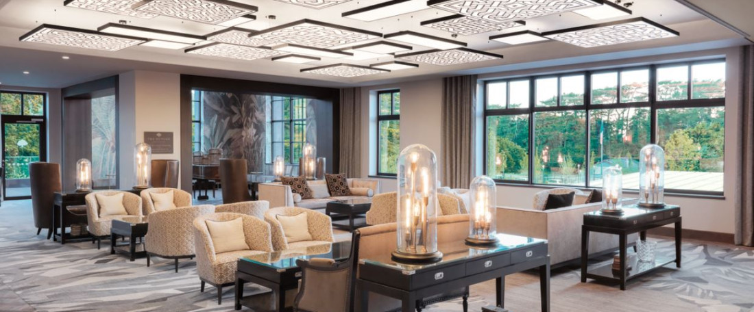 The Upper Lounge at The Dunloe Hotel & Gardens offers a relaxing setting with panoramic views over the gardens and surrounding countryside.